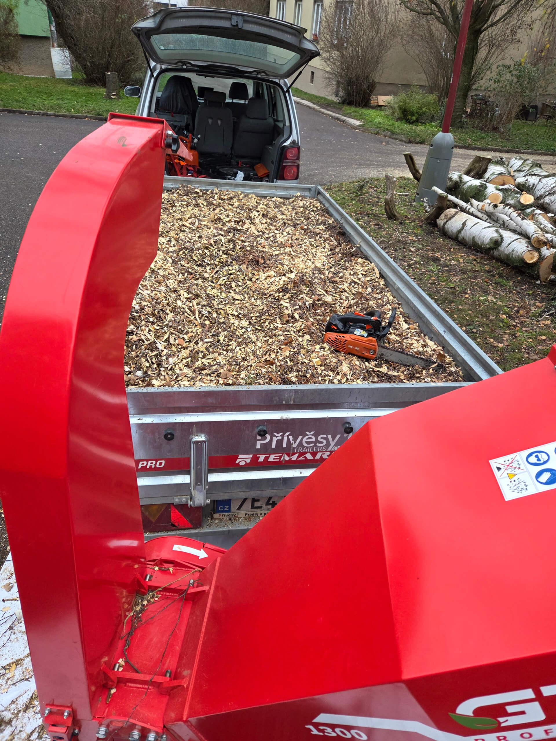 - Možnost ponechání štěpky na pozemku nebo zajištění odvozu.